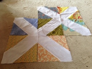 When I embarked on this project, I had made exactly two quilts. Two! The first was in High School, and was my major project in my Year Ten Textiles course. So, just a little time has passed since then. Slightly more recently, I made a cot size quilt for my youngest niece. Both of these quilts were relatively simple pieced squares. My niece’s quilt was my first attempt at QAYG, so it’s not like I was entirely inside my comfort zone. So imagine what I was thinking when my sister picked out this design! (This design was heavily inspired by Jo Morton’s Wild Goose Chase Quilt)