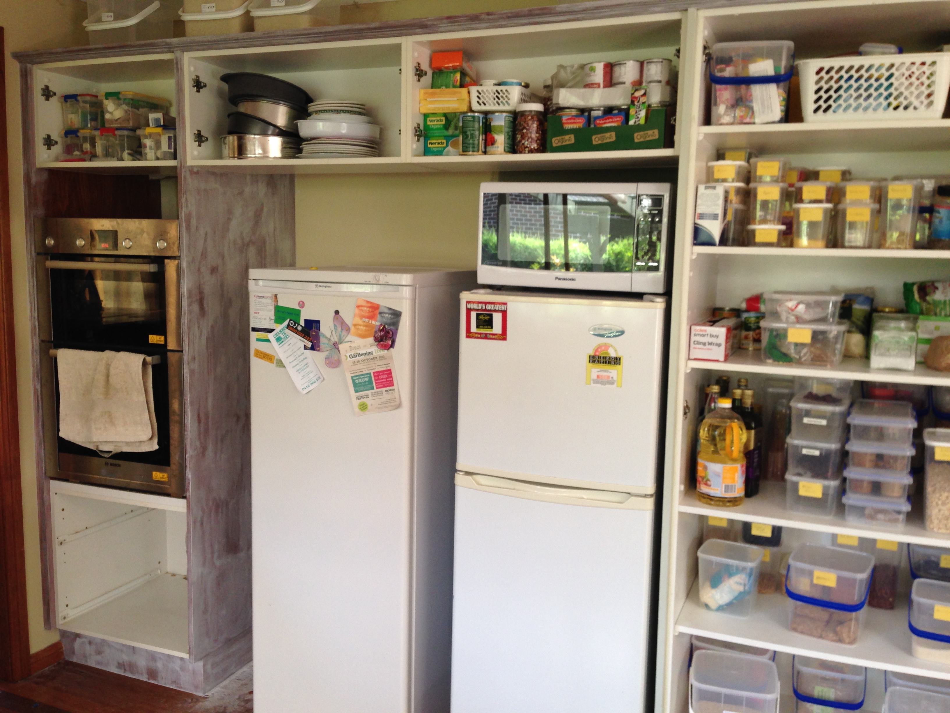 And that’s it, for painting cabinets: for now. So far the finish has held up really well: no dents or dings or paint flaking off. The blackboard cleans up nicely and has a lovely smooth finish (with a matt sheen). Now I have to steel myself for phase two, which is painting the other cabinets!