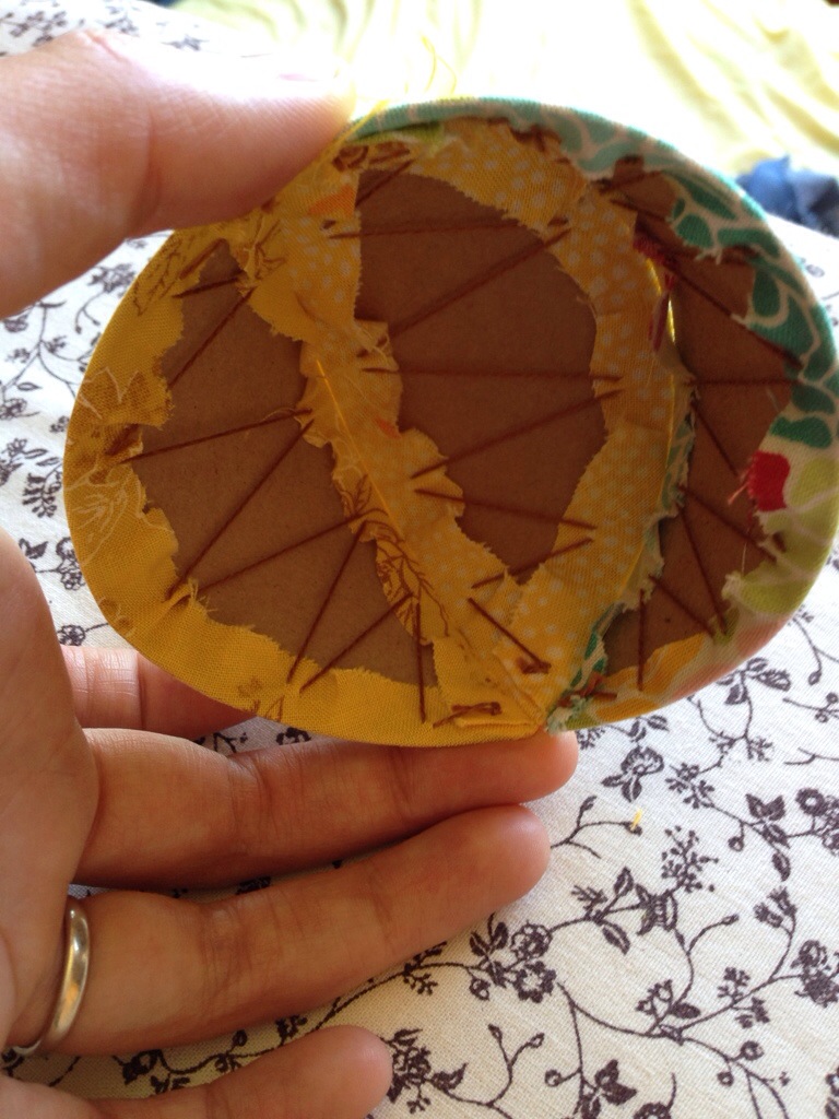 When you get to the top of the template, fold the fabric around the top point in the same way, and secure with a few stitches.