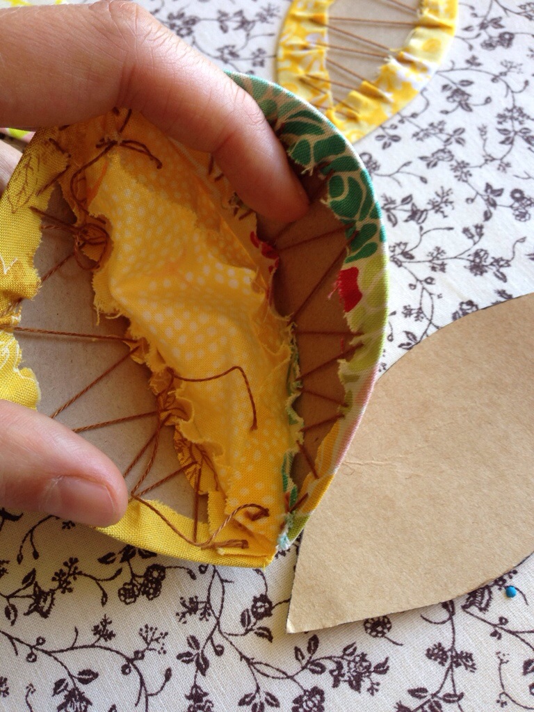 - Don’t stitchย through the template, just catch a bit of the fabric itself.