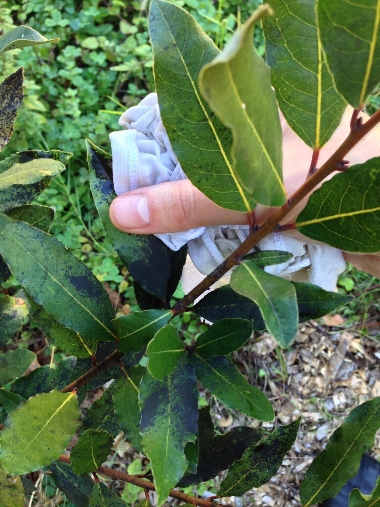 I don’t want to lose my lovely Bay tree, so I went to work with my secateurs to prune the worst of the sooty black mould away. The tree won’t mind a trim, I haven’t been pruning it since we planted it and it was getting a little tall.