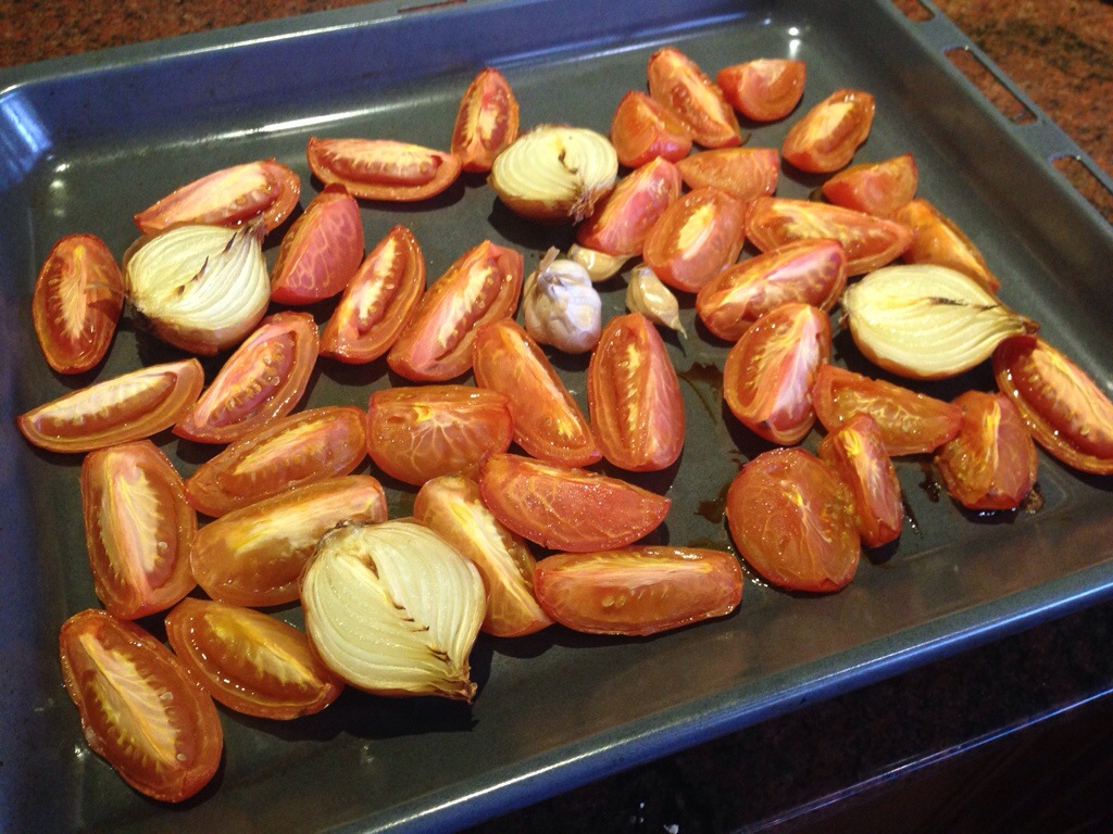 My organic box service *does* offer “cooking tomatoes”, however, which are rejected first grade fruit. Normally organic tomatoes sell for $12 per kg, which is pricey compared to regular supermarket tomatoes at $8 per kg. But the organic “cooking tomatoes” are sold for $3.50 per kg, which is a total win.