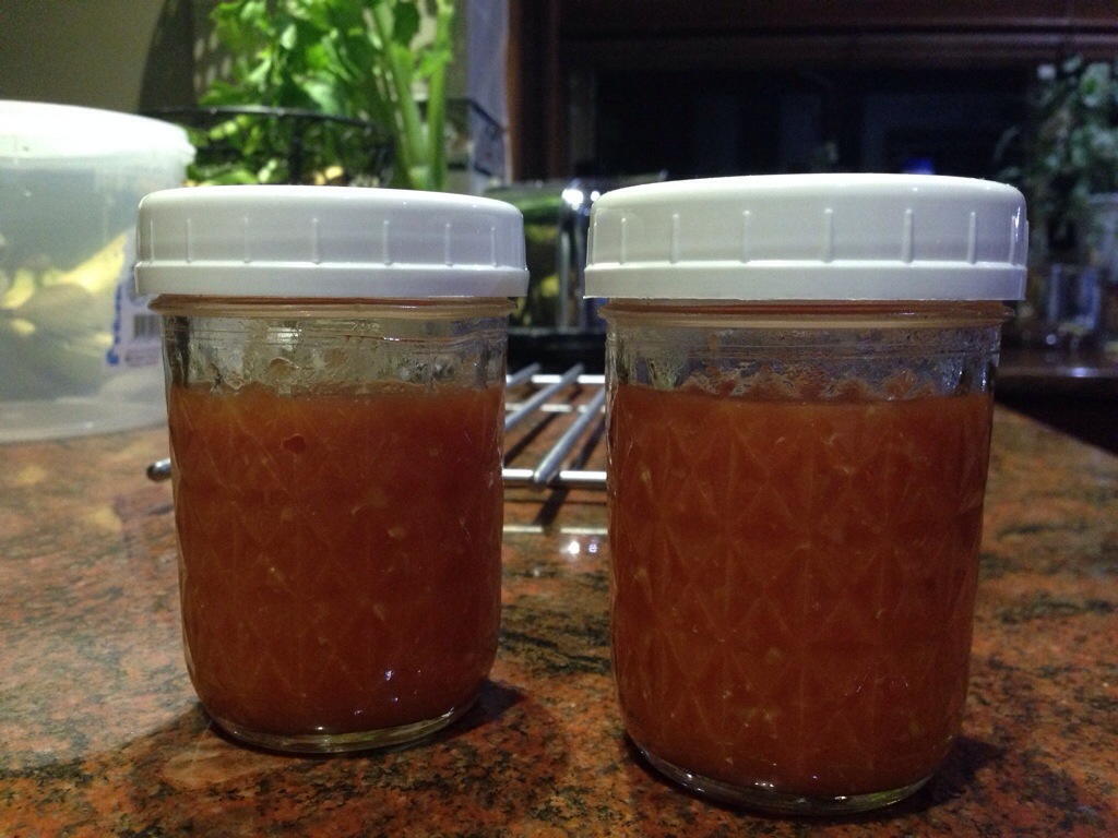Verdict: the professional sauce still wins on flavour, although my sauce was very good this time. The flavour would have been even better if I had time to ripen the tomatoes for a few days on my kitchen bench. In the end, my sauce wins on availability, and was cheaper!