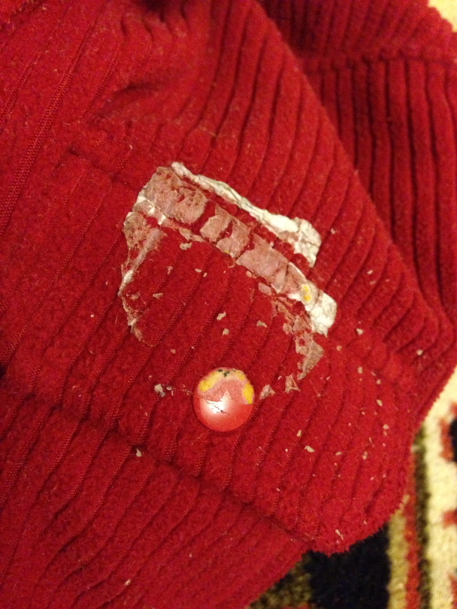 It doesn’t even really wet the area, but it does make a very (nice!) strong smell. Moments later, I had cleaned off the sticky mess, leaving me with a clean jacket ready to wear.