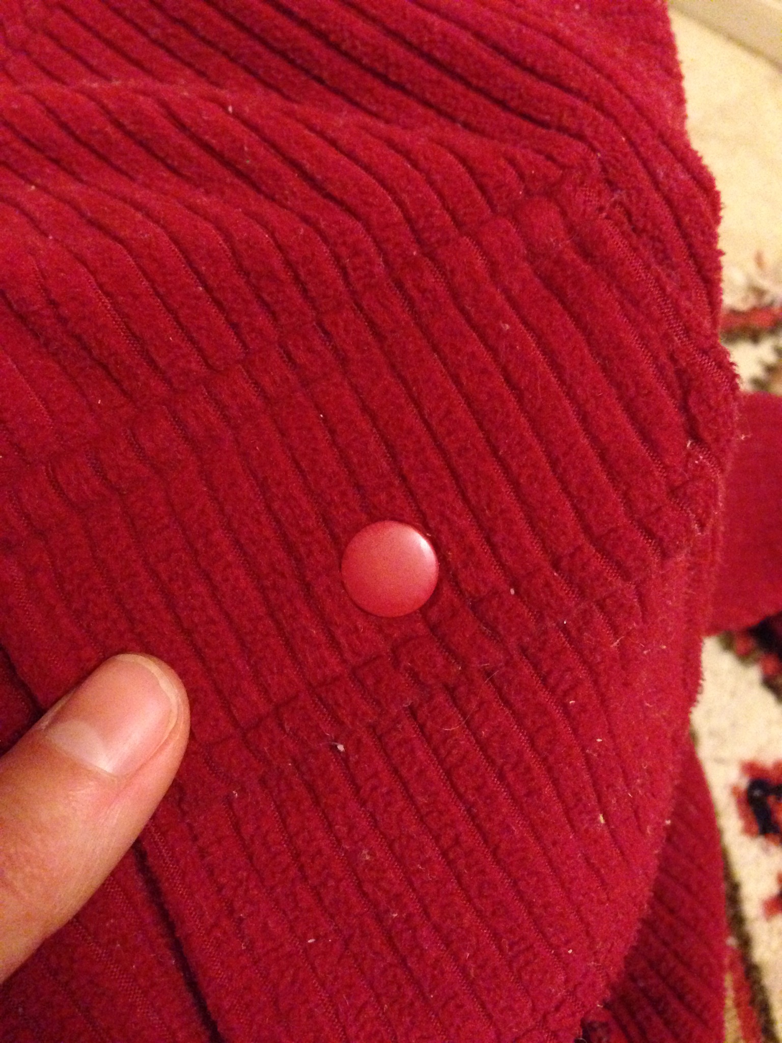 It may be that the colour came off the metal press-stud, or it may have come off the fabric. I didn’t notice any difference in colour on the jacket, but use caution for a special garment. 🙂