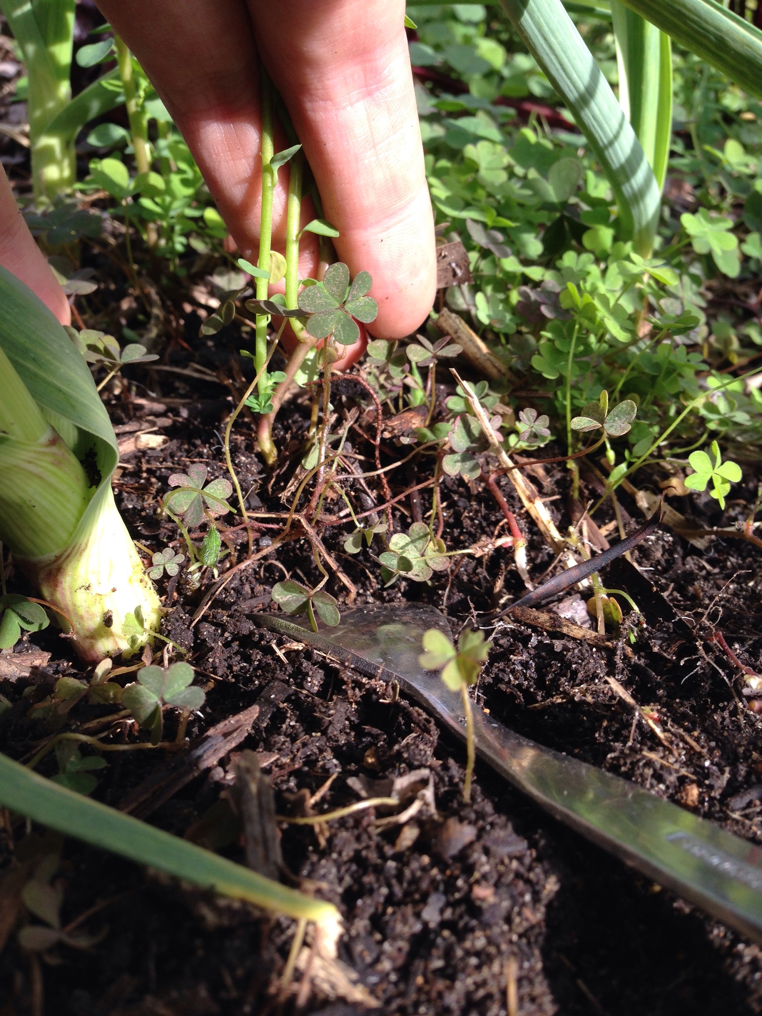 The other day we experienced a respite from the endless rain, at which point I noticed our garlic patch had become rather overgrown with weeds: