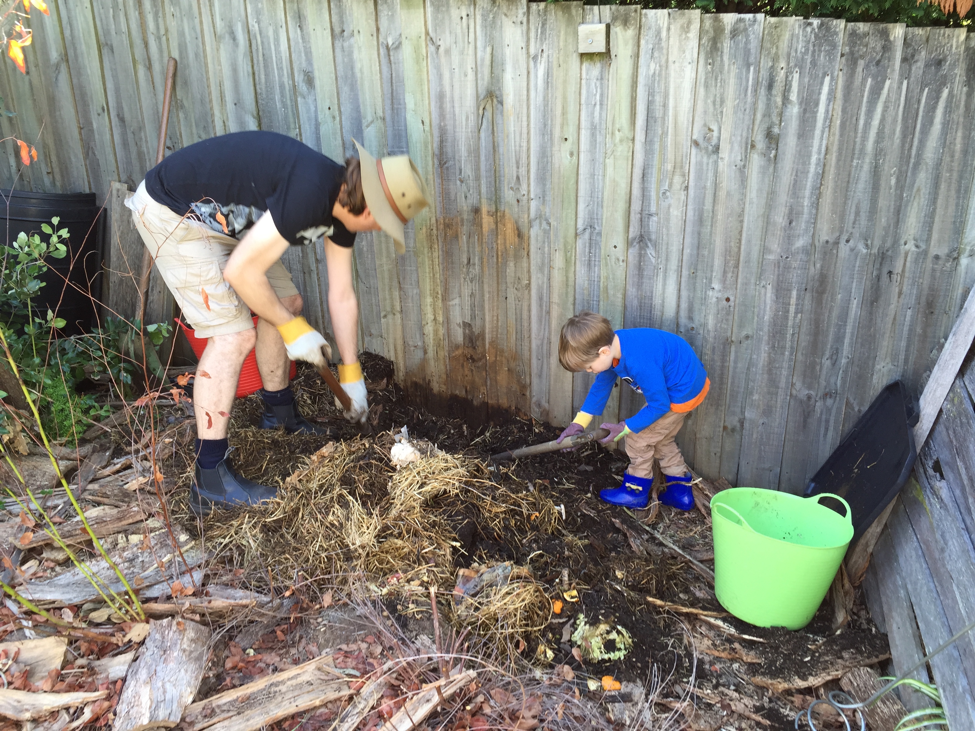 William is a pretty good helper! Here he is, adding compost to the bucket, for Daddy to take over to the garden bed: