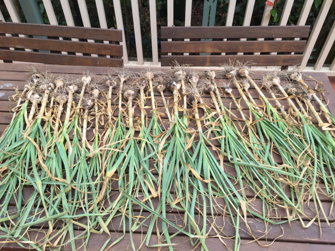 This year I didn’t see any spindly stalks. Maybe we’ve had a better season, or maybe we just prepared our garden bed better? This year we added well-rotted cow and chicken manure, and dug through some blood and bone. Then a week later we planted out the best five or six bulbs from last year’s crop.
