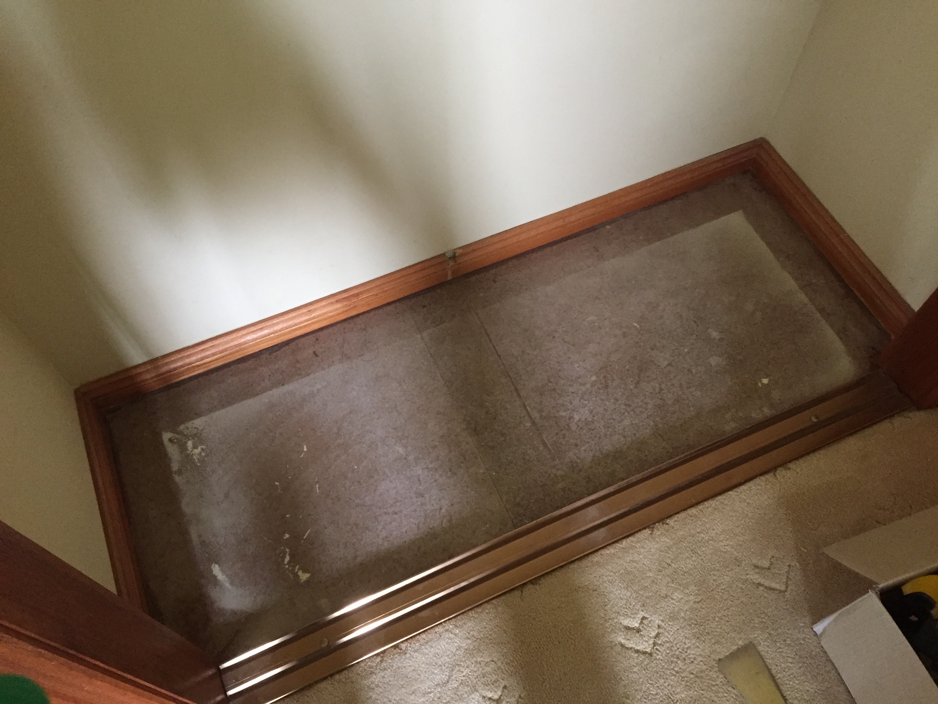 At this point, I discovered the carpet was cut up the middle, and didn’t look so good. It wasn’t attached to the floor at all, so I looked underneath.
