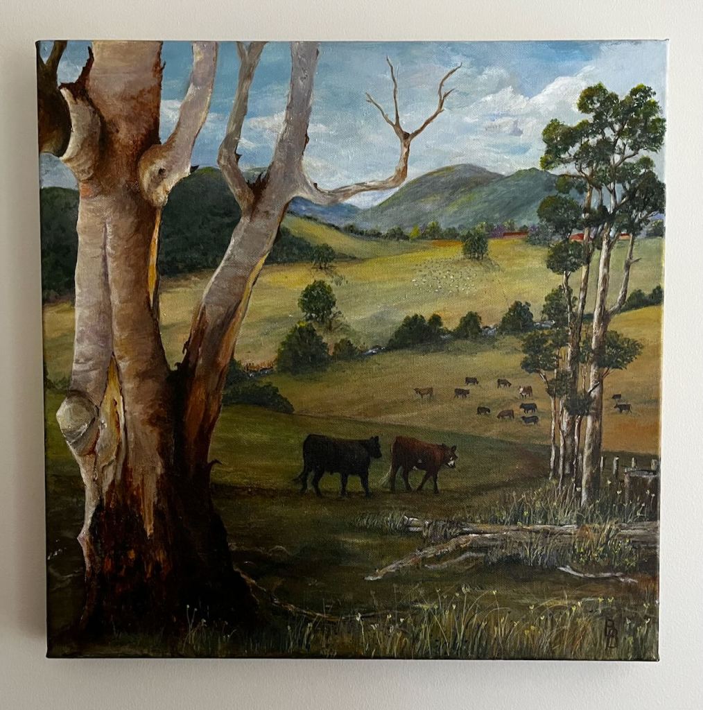 It’s a beautiful pastoral scene painted by Bronwyn Bellchambers, an artist who lives up the coast near my parents.