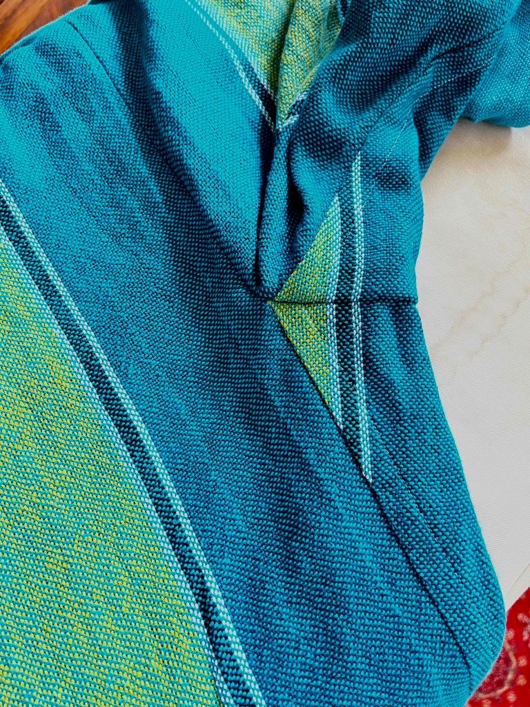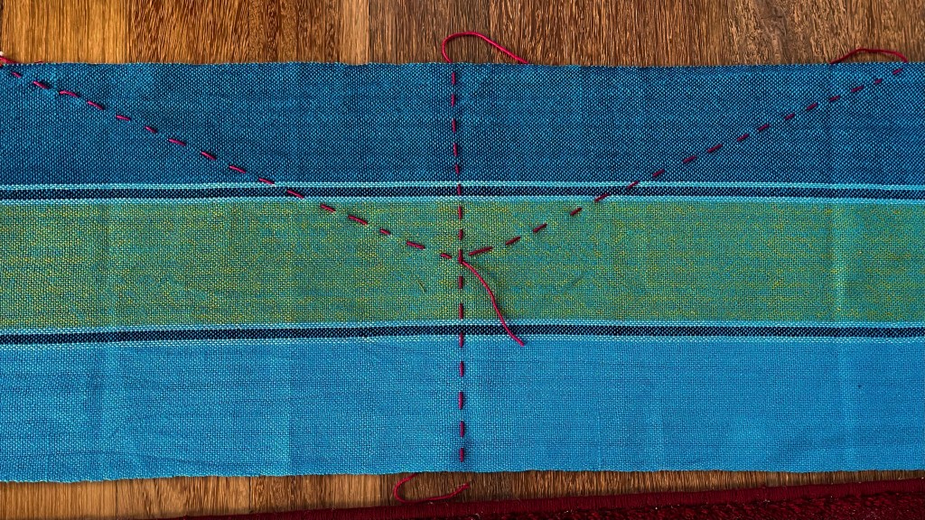 I was nervous of cutting into the cloth without dealing first with the edges, since I’d heard that hand woven cloth is prone to unravelling.
