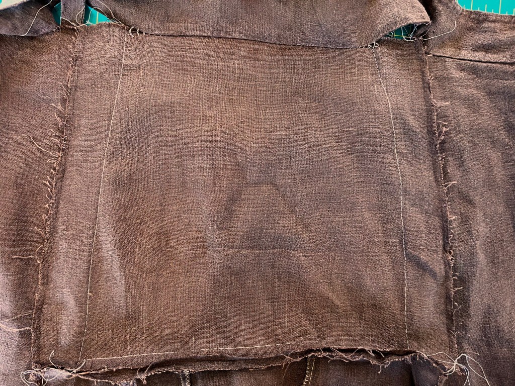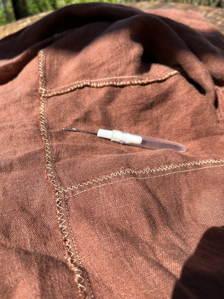 Since I had no more brown linen, I used a fragment of thicker green linen to create the lining.