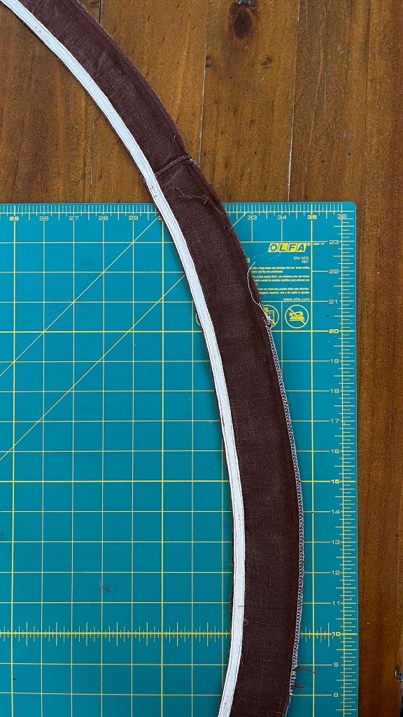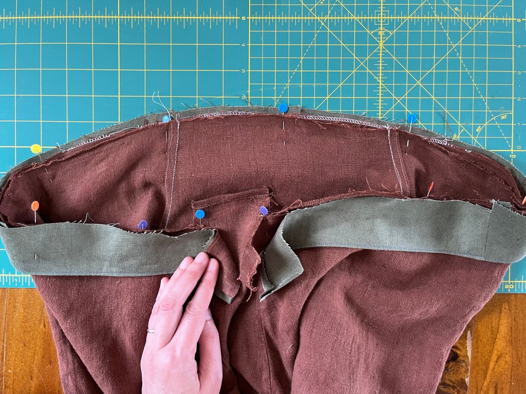 You could stitch-in-the-ditch for a less visible machine stitching. Again, I don’t mind this showing as the waist band will never be visible.