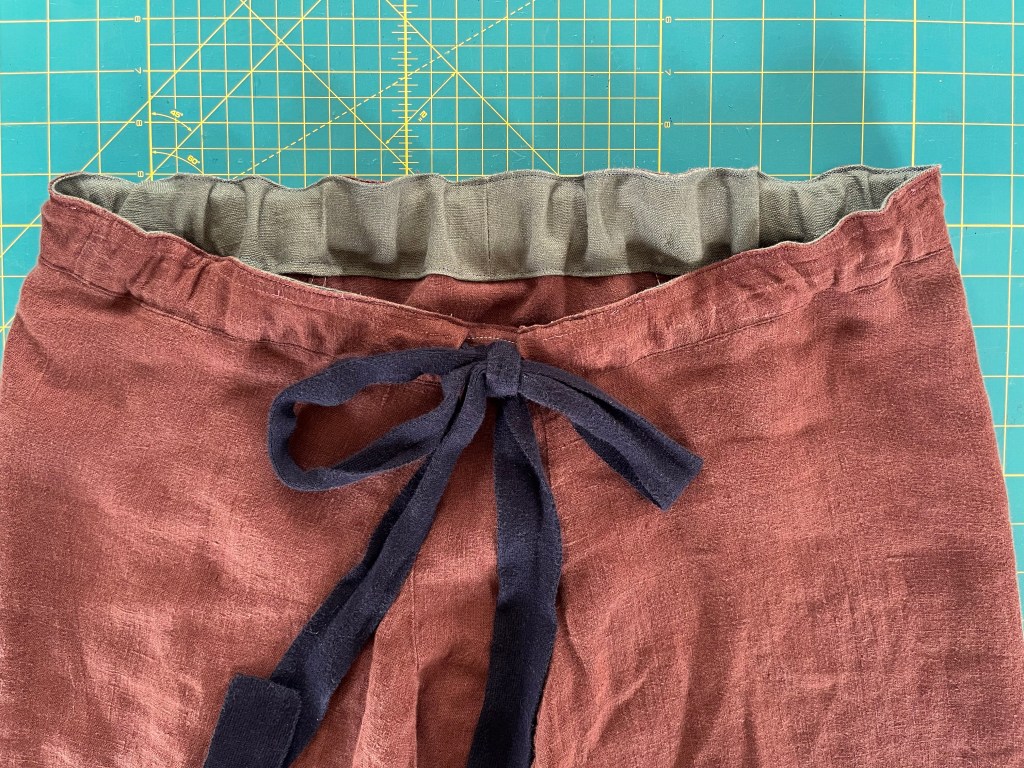 I had a strong suspicion that this draw-string waistband was making the “too baggy” effect much worse, as all the excess fabric was bunching in the front.