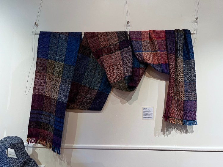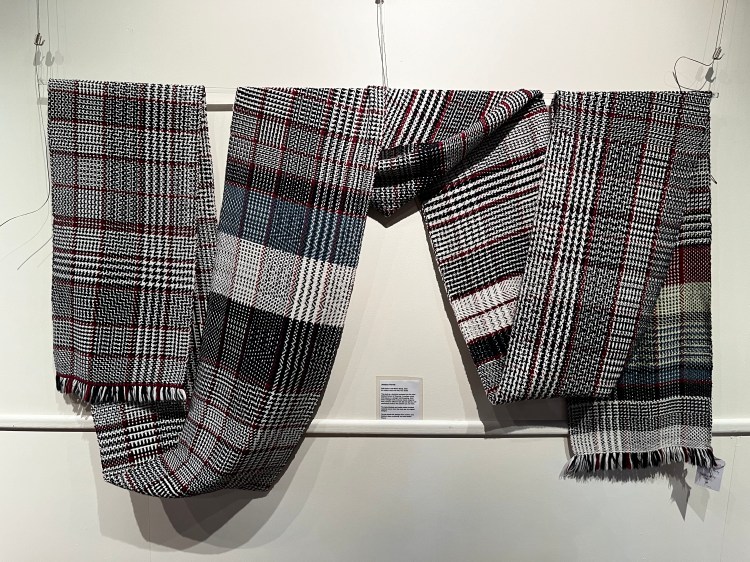 Most of the pieces in the exhibition were woven using Colour and Weave techniques, where sequences of light and dark threads are layered onto weave structures like Twill and Lace in order to produce amazing patterns.