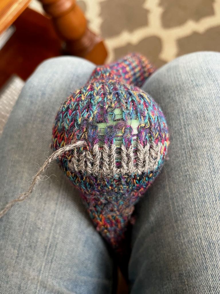 When you’re done you have a patch that is seamlessly integrated with the original sock.