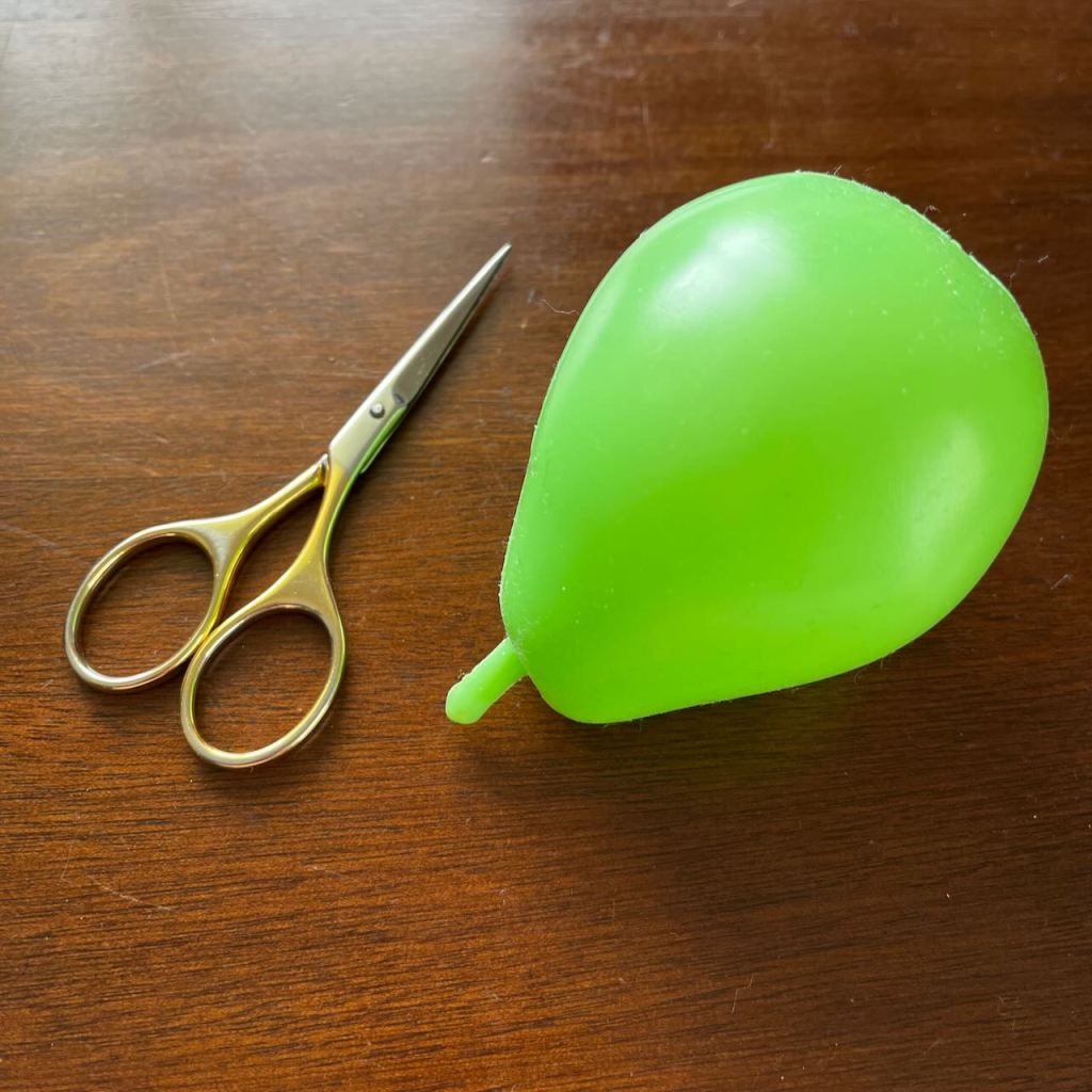 My smooth, round, hard thing is a plastic toy pear (embroidery scissors shown for scale).
