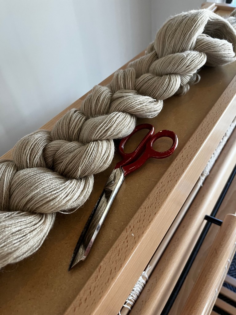 The plan here was to create a vertically striped fabric, with nothing fancy in the weft. That way if my weaving wasn’t even from pick to pick, I wouldn’t have to match anything horizontally (like checks or plaids).