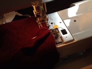 Sewing the leg holes by machine was only just possible. My leg holes came out about 8 inches in circumference, which is smaller than the barrel of my machine. I needed to stretch it over the machine and really help it along when I was sewing. I think the quilting “walking” foot really helped, here. If you can’t get your machine to do the work for you, hand-stitching will hold together just as well. My pink cover at the top of this post was done entirely by hand. You can get lovely flat-felled seams that way!