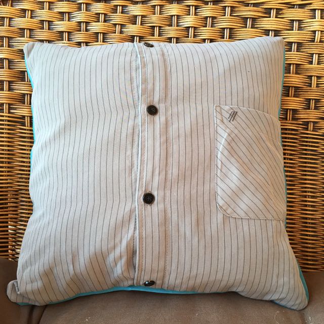 The back of this pillow is a man’s shirt front, complete with the original pocket. I thought it would be cute to have a secret pocket on a pillow! The fabric was also used on the pillow top, in the border.