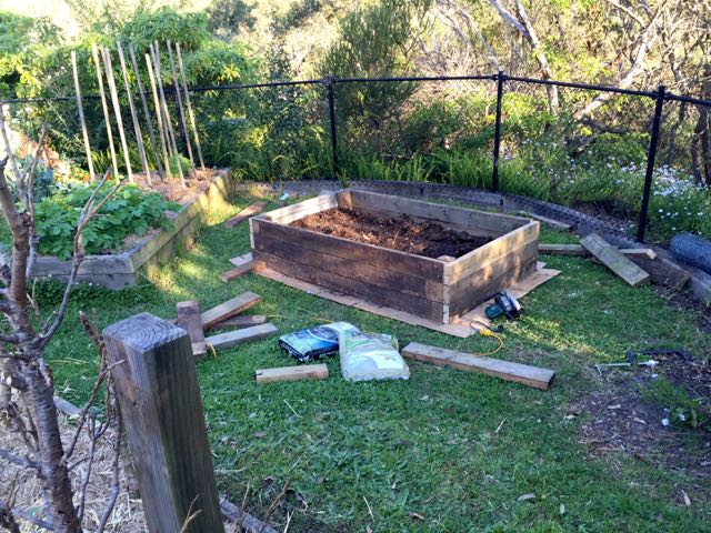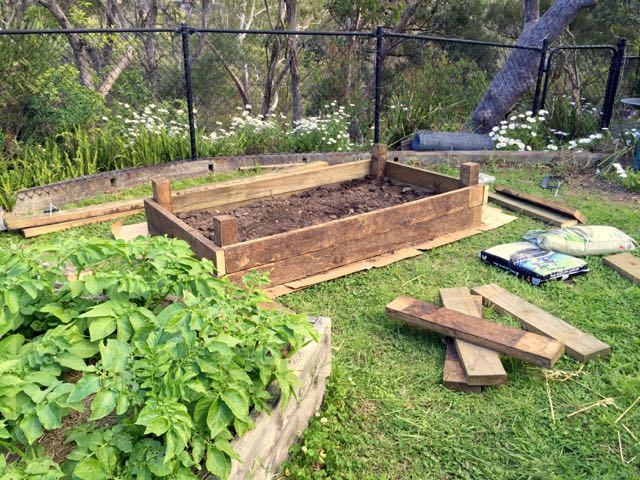 We used all the soil from the old bed, even though we cut some of the boards shorter!