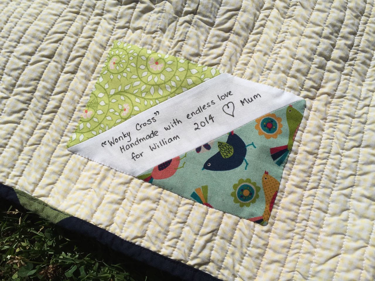 To make a label, I created a strip of white fabric, quite like bias binding. The edges are folded to the centre, and then folded in half again. This makes a very sturdy, opaque, label that I can write on.
