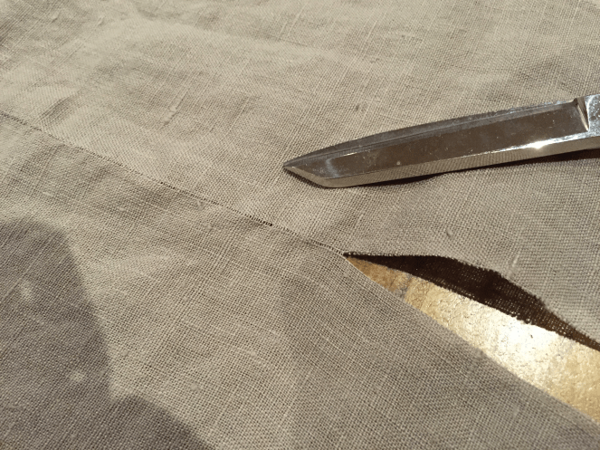 Here I am pointing at the problem edge: notice how I’ve made a fold before sewing the seam? Now when I flip the piece over, I have a tidy edge to sew down with some edge stitching: